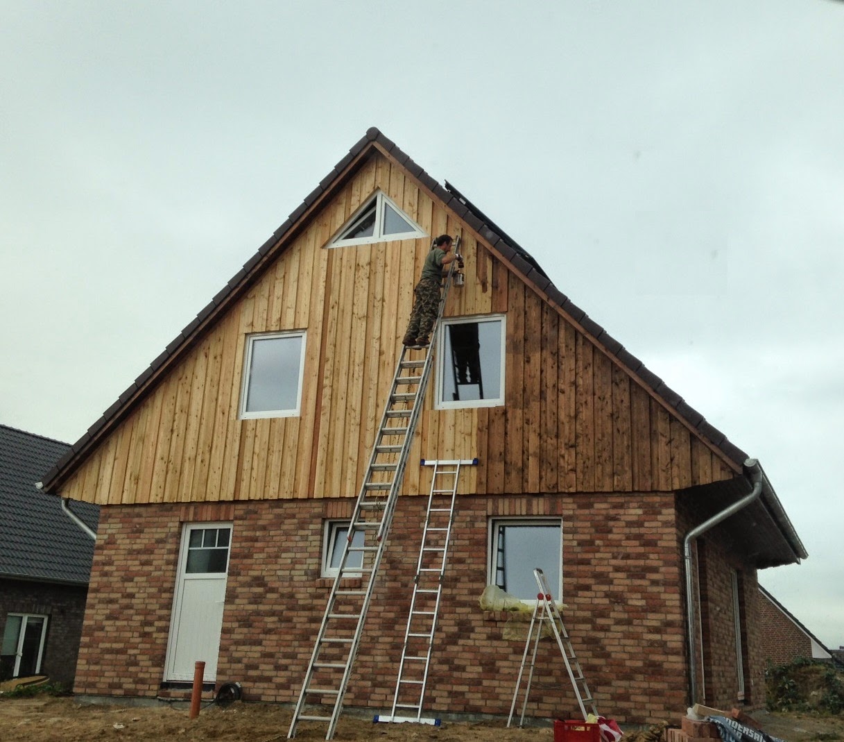Hausbau in Schleswig Holstein Giebel streichen Teil 2